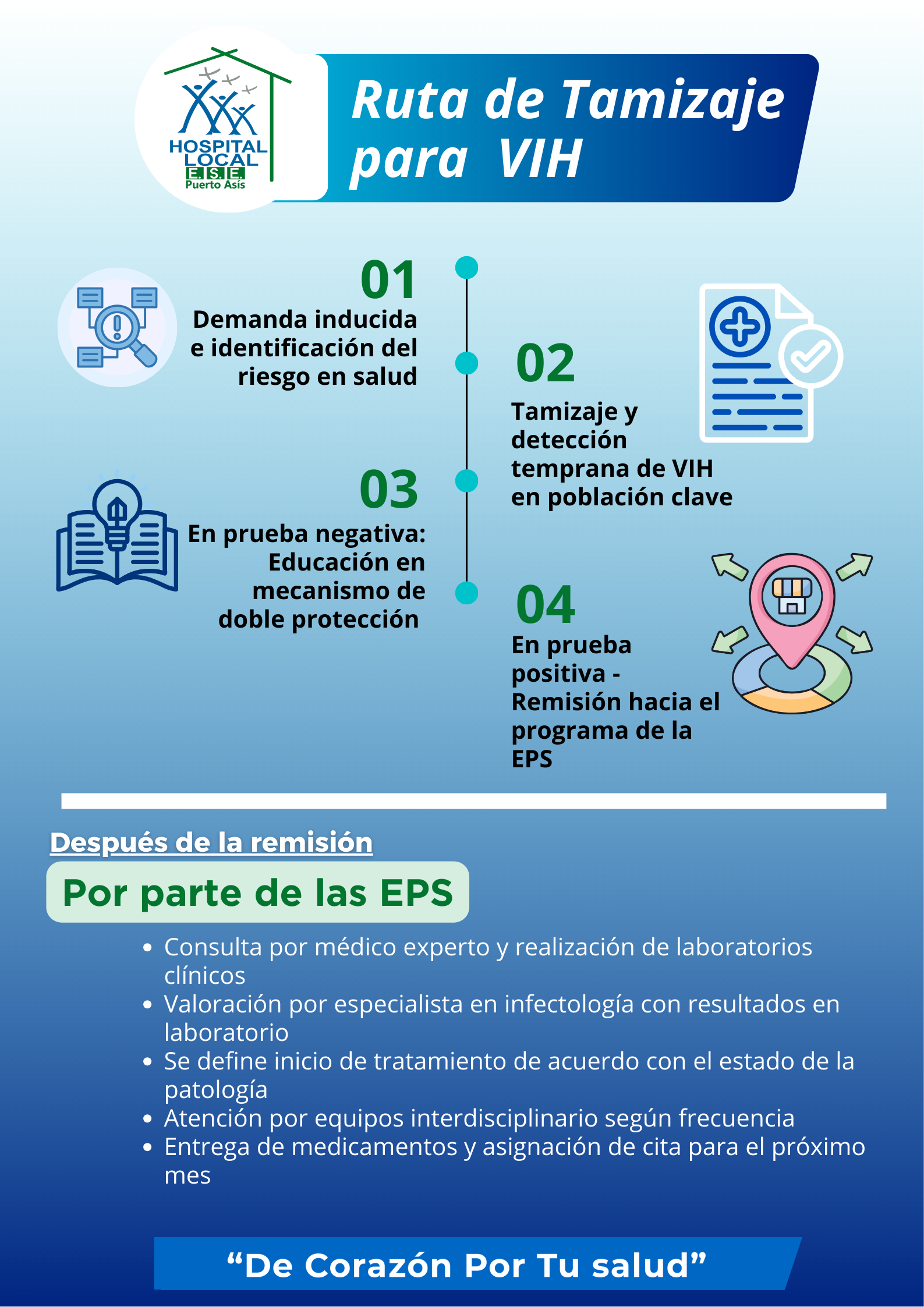 La E.S.E. Hospital Local de Puerto Asís ofrece un servicio integral de Promoción y Mantenimiento de la Salud, basado en los lineamientos de la Resolución 3280 de 2018, cuyo objetivo es mejorar la calidad de vida de la población, fomentando hábitos saludables y previniendo enfermedades.